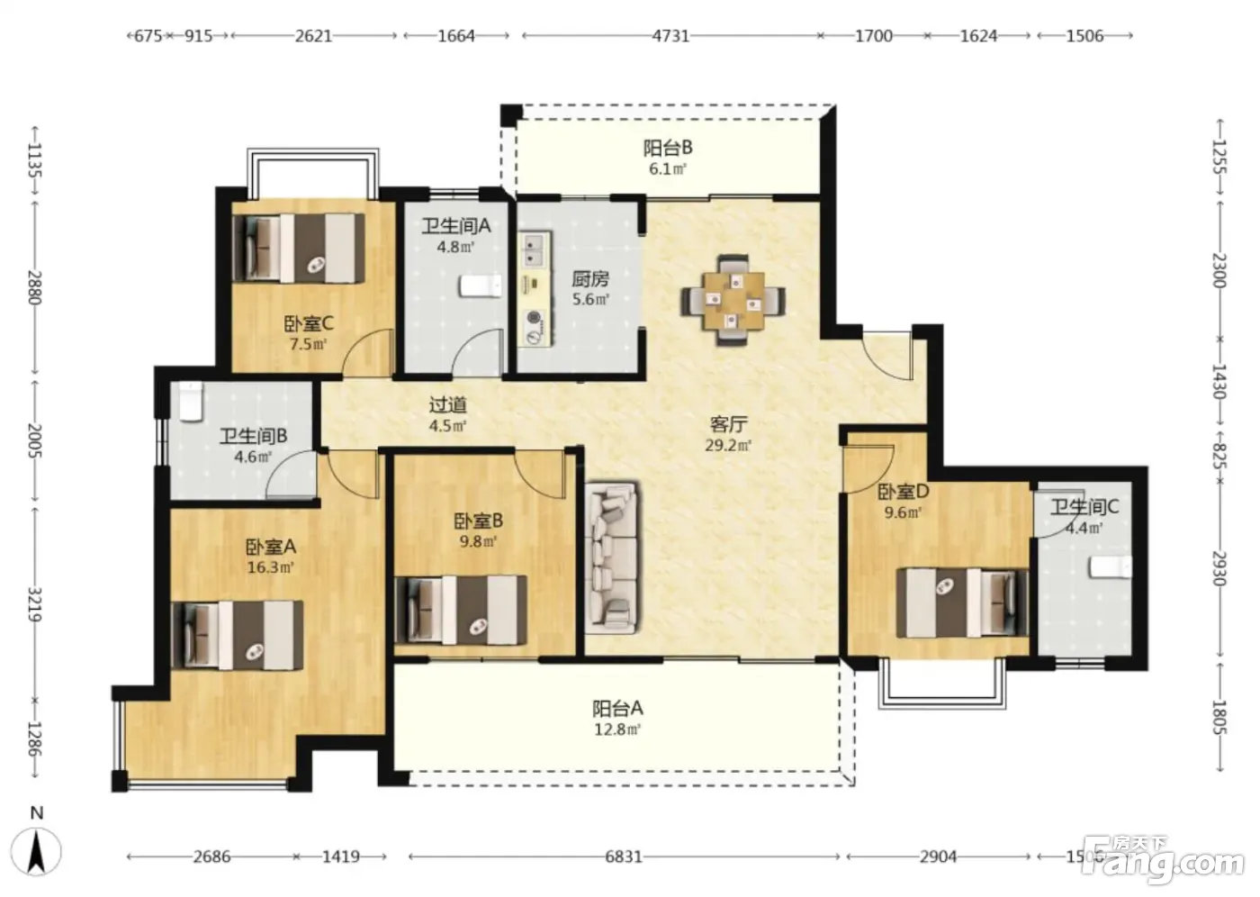 户型齐全,主打卧室带阳台,双阳台四居