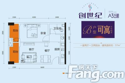 创世纪广场 1室1厅 南