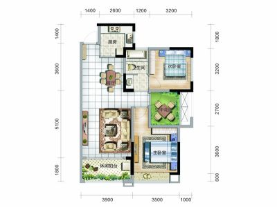 户型齐全,主打入户花园,主卧带卫,餐客分离三居
