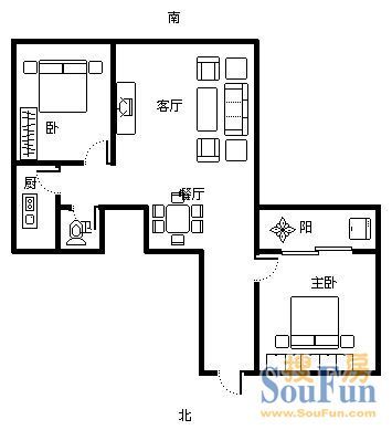 恒达时代花园 2室1厅 南