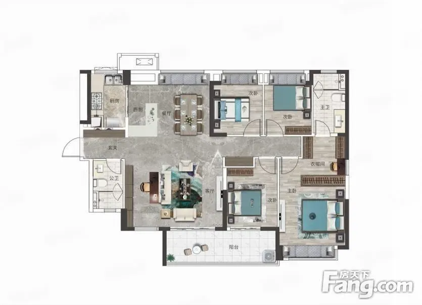 户型齐全,主打全明格局,户型方正四居