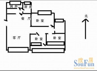 德政园聚心苑 3室2厅 南 北
