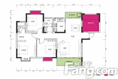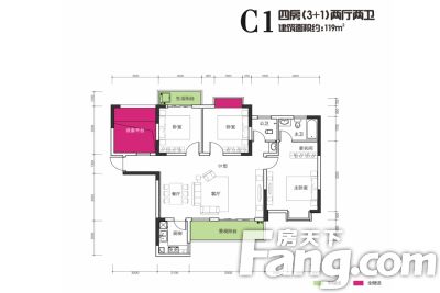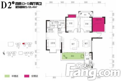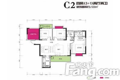 户型齐全,主打户型方正,主卧朝南,主卧带卫四居