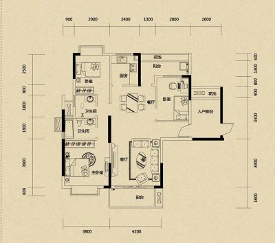 户型齐全,主打明卫,双阳台三居