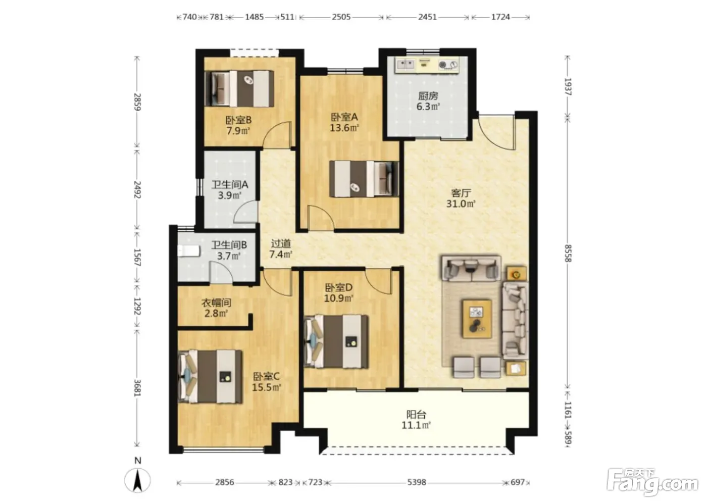 旭辉雨花郡 4室1厅 南