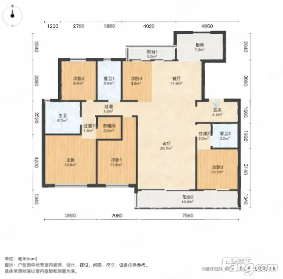 户型齐全,主打主卧带卫,双阳台四居