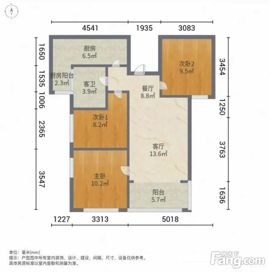 户型齐全,主打明厨,明卫,主卧朝南三居