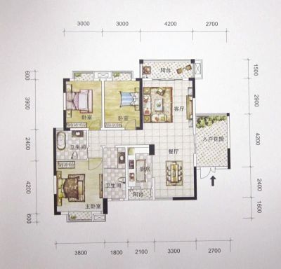 户型齐全,主打户型方正,明卫,明厨,主卧朝南四居