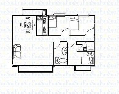 户型齐全,主打户型方正,明卫,明厨,客厅朝南,主卧朝南二居