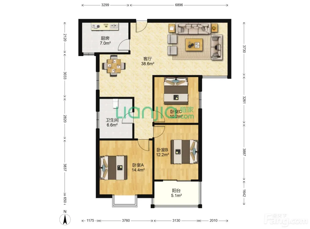 户型齐全,主打户型方正,明厨,明卫,客厅朝南,主卧朝南三居
