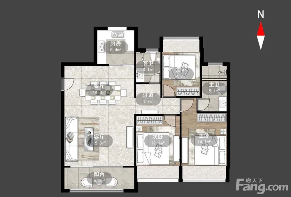 户型齐全,主打户型方正,卧室朝南三居
