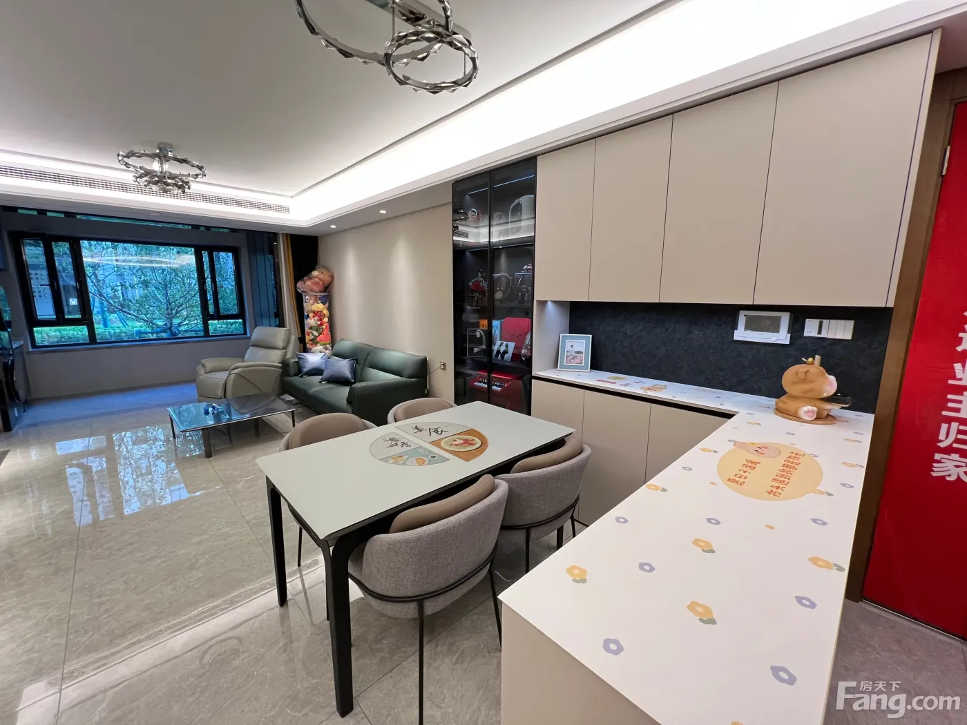 【关于房子】 1.面积:面积114.45平 2.楼层:电梯洋房 总高8层,位于1楼,有电梯,一梯两户。 3.户型:三室一厅一厨两卫,房子南北通透,中间位置,明厅 南面有大阳台。 4.采光:光线非常好,南面客厅、全天无遮挡。房子视野非常好。 5.装修:精装修,注重品质和整洁,家具及电器齐全,可拎包入住,也可自己改风格! 【关于小区】 1.幼儿园:门口出门就是幼儿园 2. 停车:小区地下有停车位 3.小区环境:单位小区环境好,安静,人文素质高;小区绿化好,公共区域有篮球、沙地,可以遛娃,晨跑,散步,运动等。