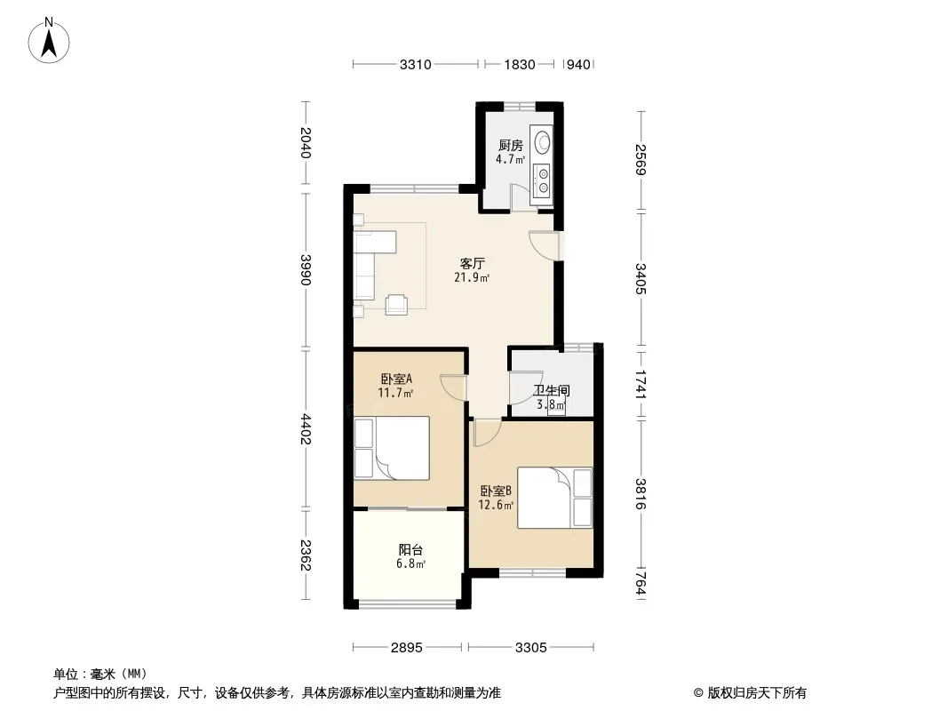 户型齐全,主打户型方正,明厨,明卫,客厅朝南,主卧朝南三居