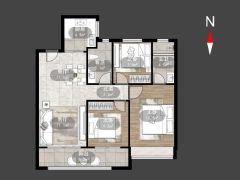 户型齐全,主打户型方正,卧室朝南三居