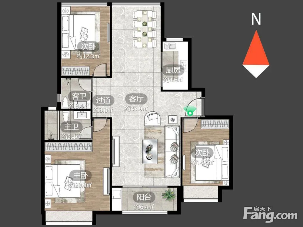 户型齐全,主打户型方正,卧室朝南三居