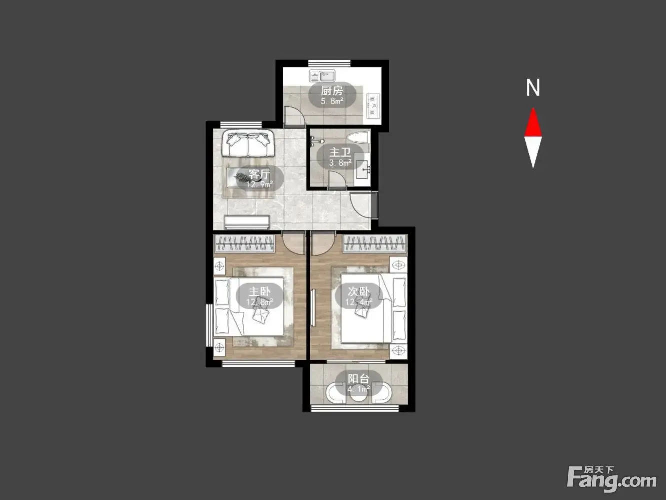 户型齐全,主打明厨,客厅朝南,双卧朝南,主卧朝南二居