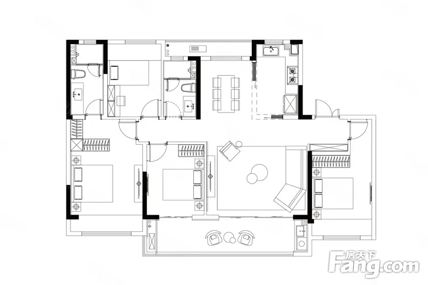 户型齐全,主打南北通透,客厅朝南四居
