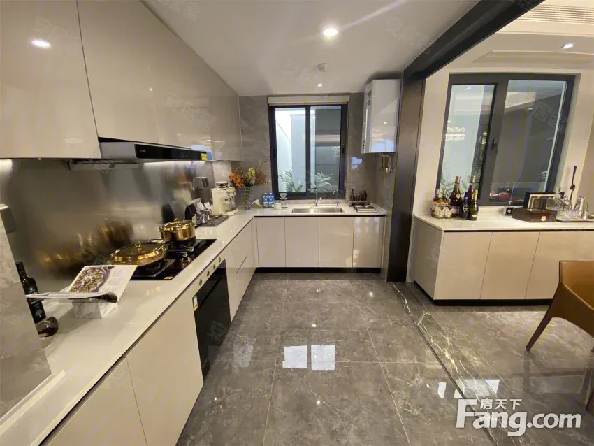 进门是一个玄关区域,沿墙布置一些储物柜,方便进出家门换鞋。 玄关另一侧就是厨房,买菜回家立刻就可以放进厨房,非常方便。U型厨房布置,更符台洗、切、煮的操作步骤,非常好 用。 厨房和餐厅中间通过玻璃隔断分隔,增加了通透感,隔绝了油烟。 阳台预留上下水,可以布置洗衣机、洗手盆,晾晒衣物,不会再洒得满屋水渍。 右边布置卧室区,动静分区明确,房间尺寸紧凑合理。 全飘窗赠送,增加了房间的空间延伸,更显得宽敞明亮。 主卧南北通长设计,打开南北窗户,自己就可以通风对流,舒适性增加很多。 北面的连廊遮挡了部分采光,这个是比较大的减分项。