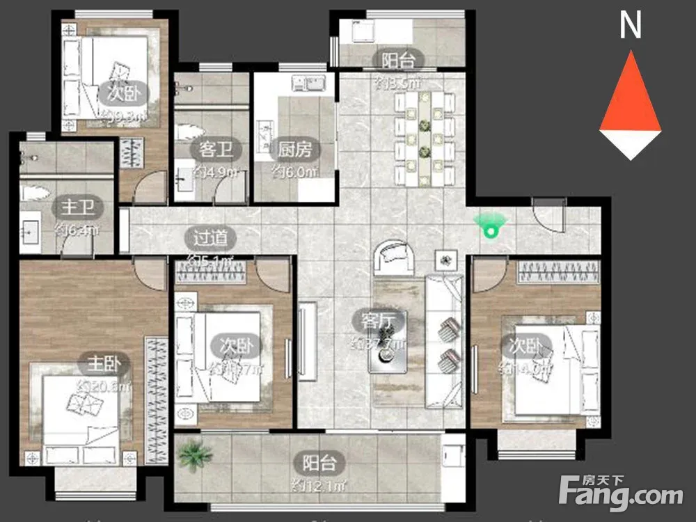 户型齐全,主打户型方正,卧室朝南三居