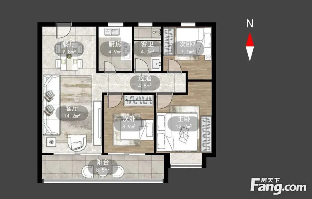 户型齐全,主打户型方正,卧室朝南三居
