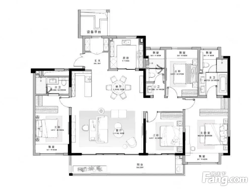 户型齐全,主打户型方正,卧室朝南四居