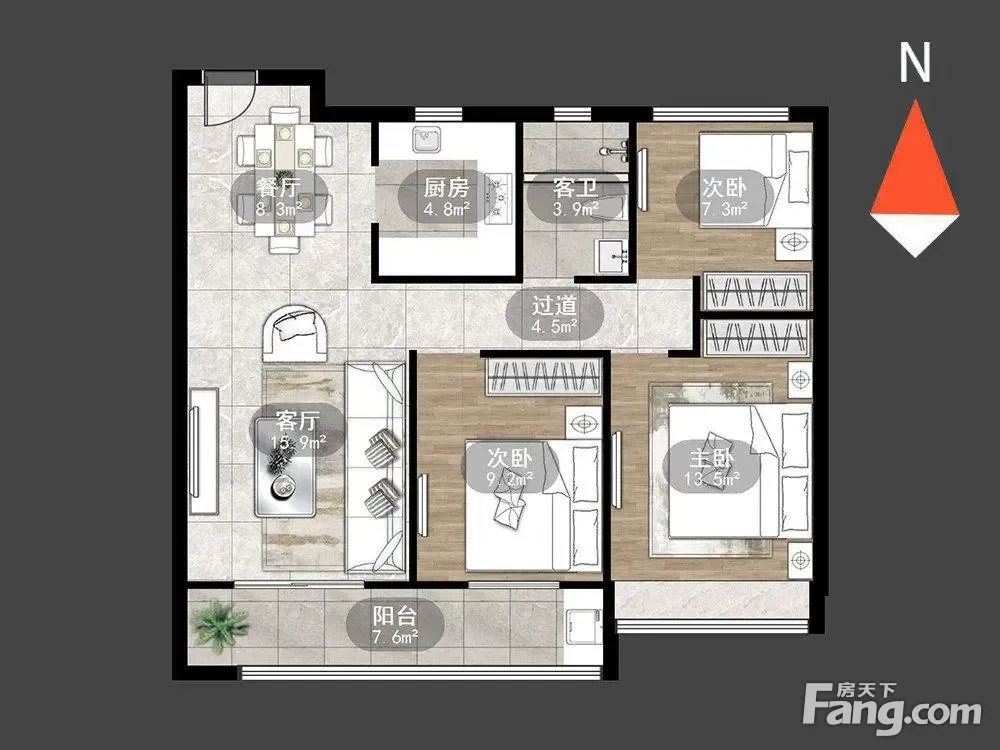 户型齐全,主打南北通透,三开间朝南,双阳台三居