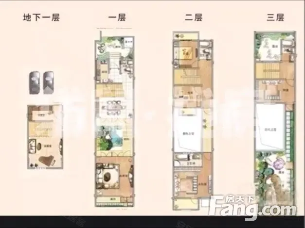 溪湖小镇,别墅。前后三个院子,上下三层