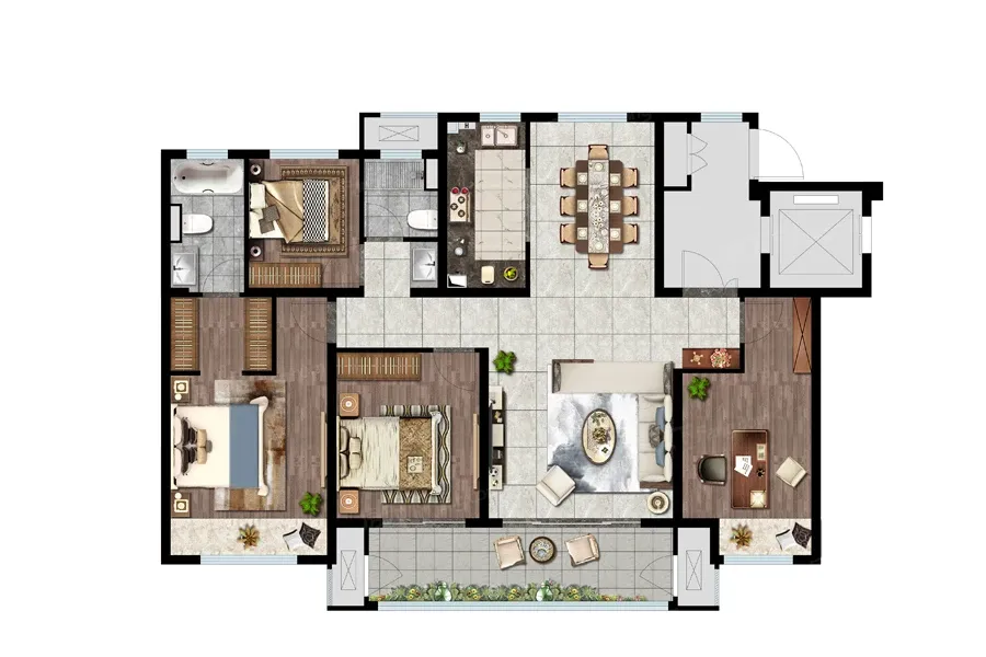 户型齐全,主打户型方正,卧室朝南三居