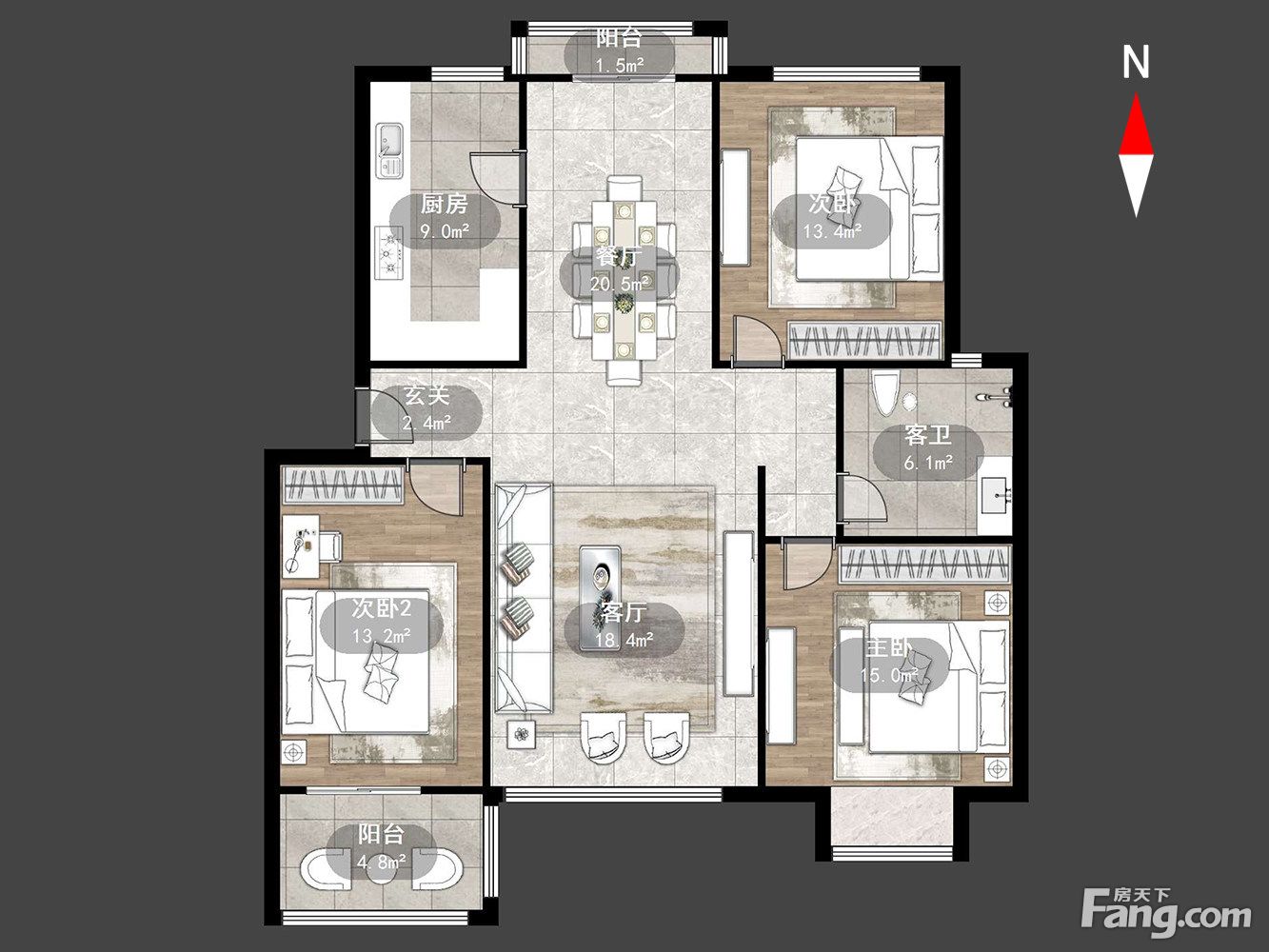 户型齐全,主打户型方正,明厨,明卫,双阳台,双卧朝南,主卧朝南三居