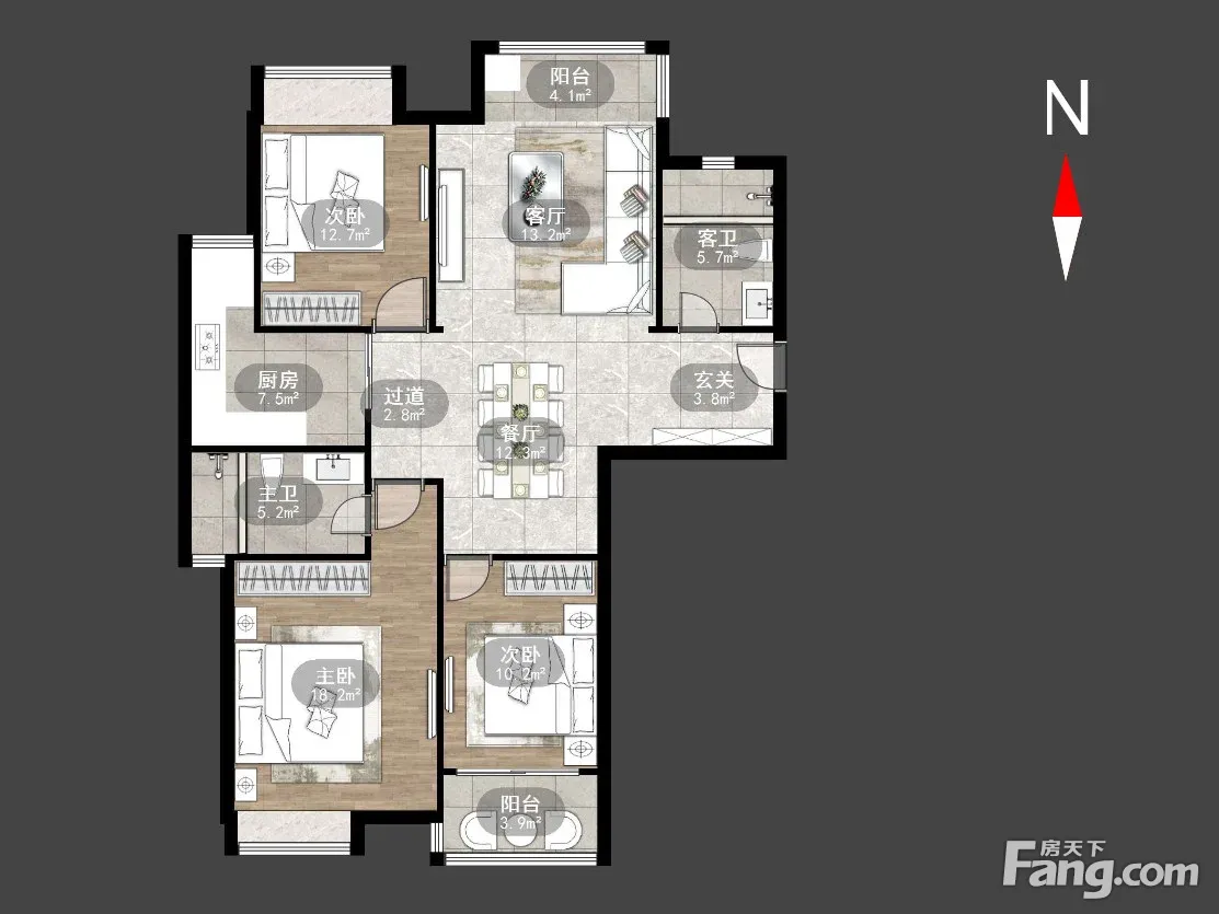 户型齐全,主打户型方正,明卫,明厨,客厅朝南,主卧朝南三居