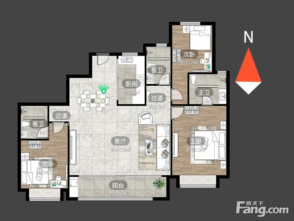 户型齐全,主打户型方正,卧室朝南三居