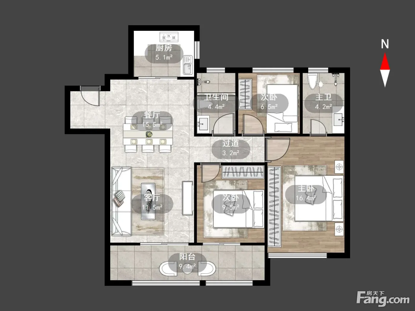 户型齐全,主打户型方正,卧室朝南三居