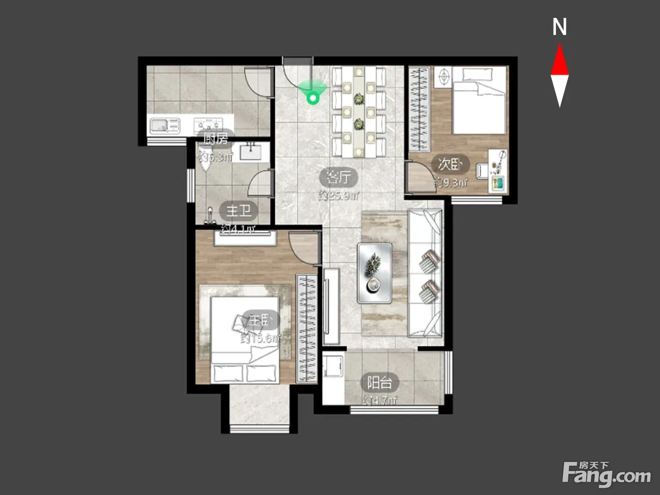 户型齐全,主打户型方正,明卫,明厨,双卧朝南三居