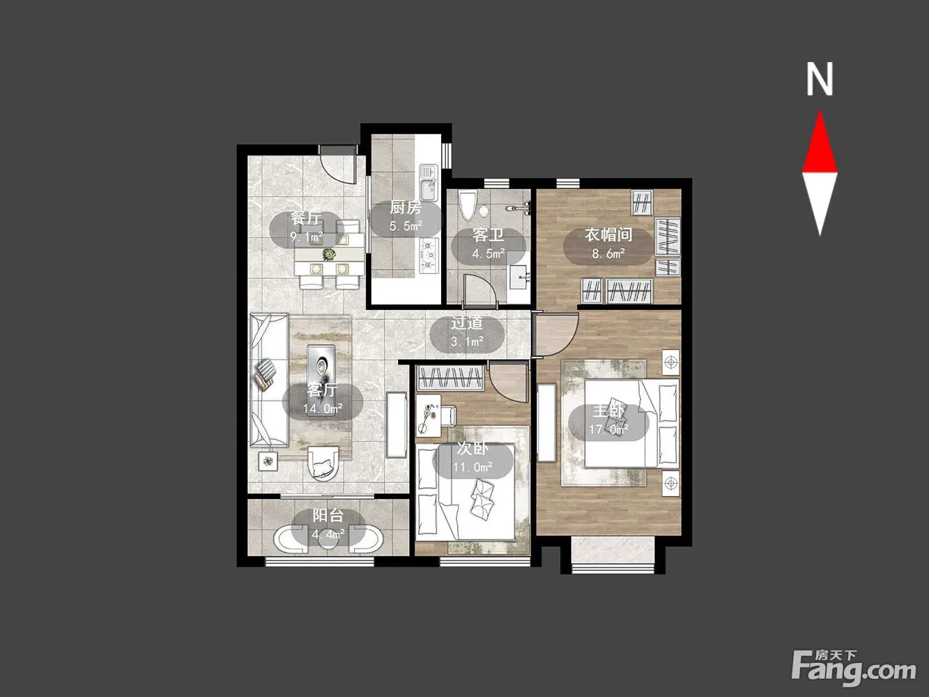户型齐全,主打户型方正,明卫,明厨,客厅朝南,主卧朝南三居