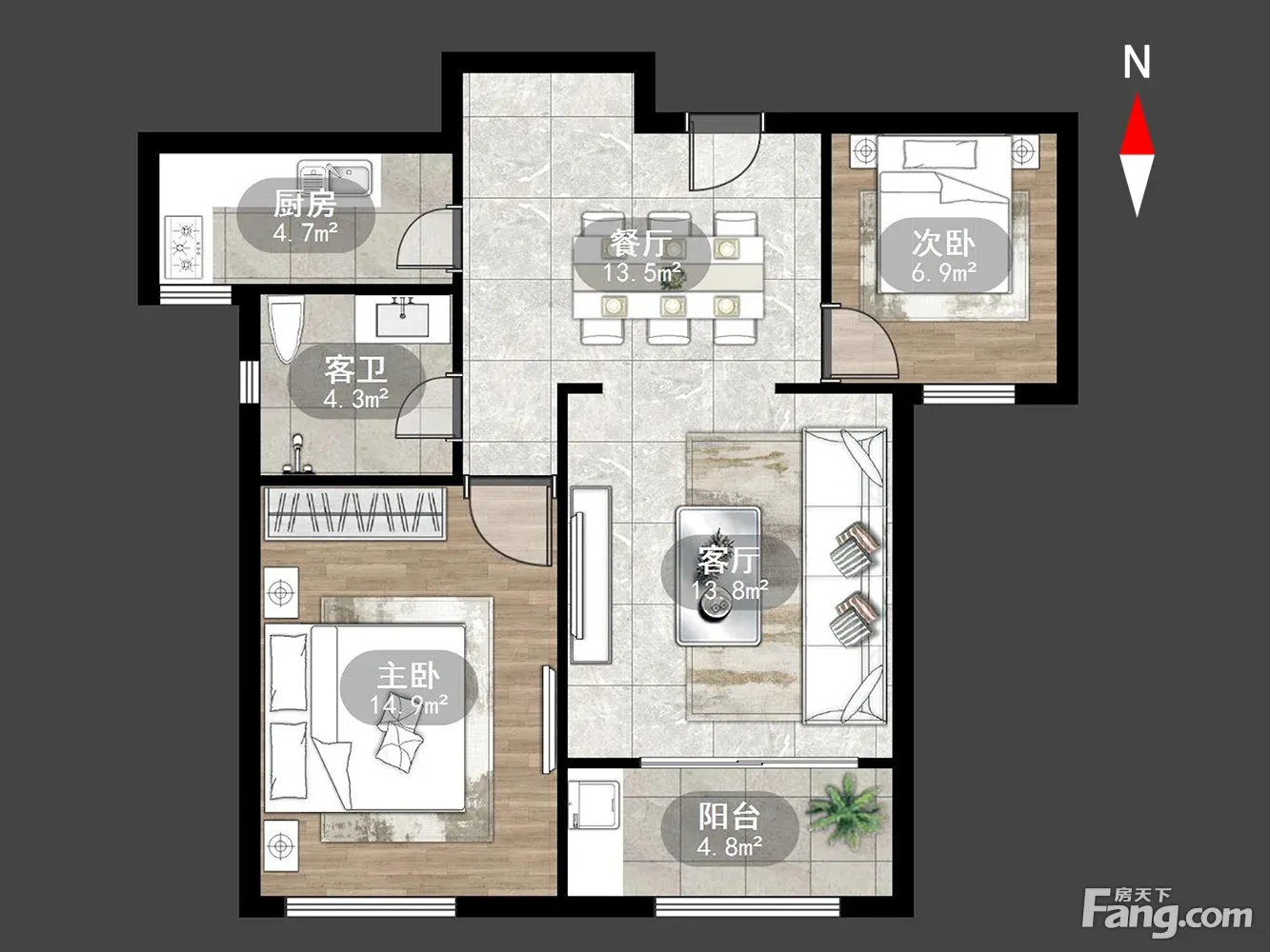 户型齐全,主打户型方正,明卫,明厨,主卧朝南三居