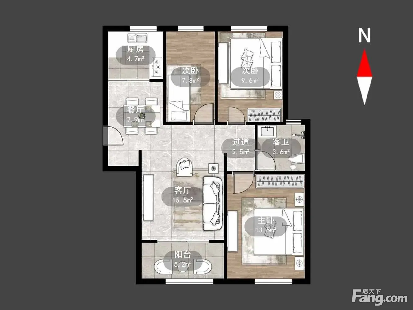 户型齐全,主打露台,南北通透三居