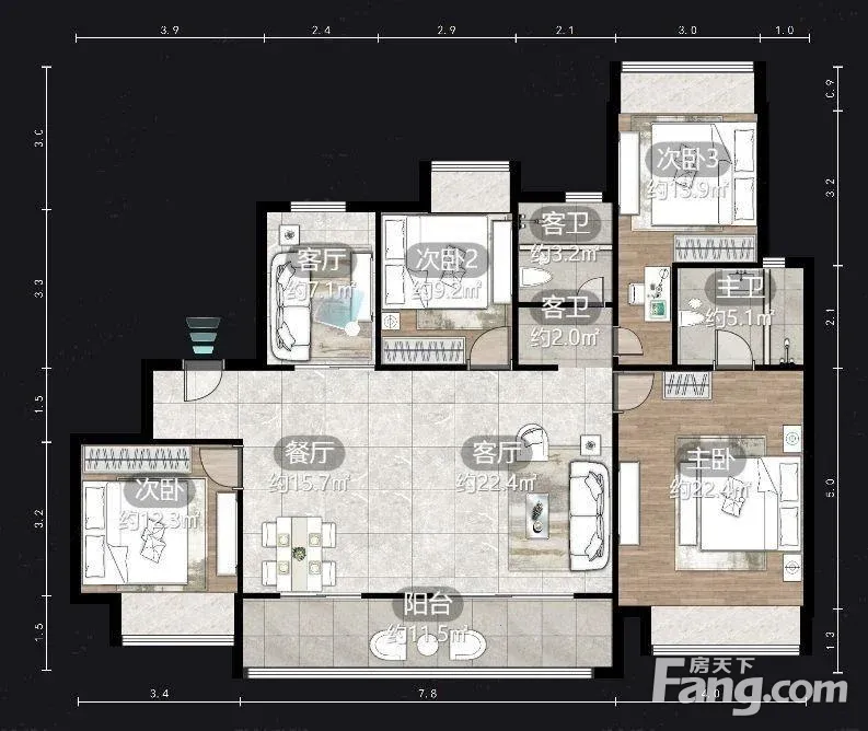 户型齐全,主打户型方正,卧室朝南四居