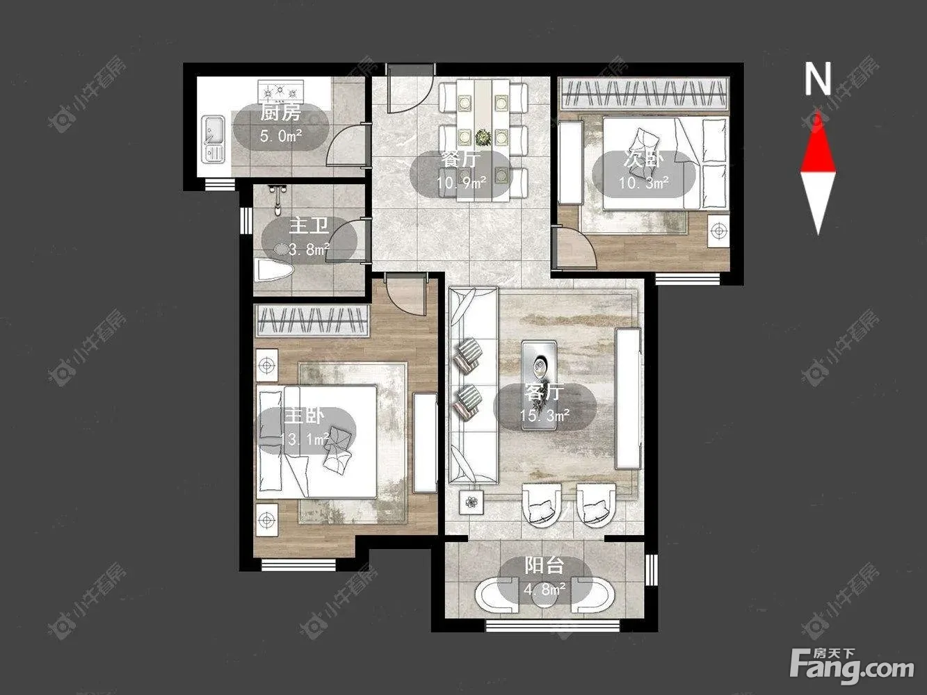 户型齐全,主打户型方正,明卫,明厨,客厅朝南,全明格局,主卧朝南二居
