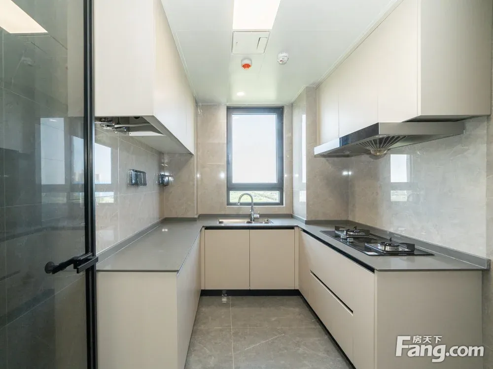 进门是一个玄关区域,沿墙布置一些储物柜,方便进出家门换鞋。 玄关另一侧就是厨房,买菜回家立刻就可以放进厨房,非常方便。U型厨房布置,更符台洗、切、煮的操作步骤,非常好 用。 厨房和餐厅中间通过玻璃隔断分隔,增加了通透感,隔绝了油烟。 阳台预留上下水,可以布置洗衣机、洗手盆,晾晒衣物,不会再洒得满屋水渍。 右边布置卧室区,动静分区明确,房间尺寸紧凑合理。 全飘窗赠送,增加了房间的空间延伸,更显得宽敞明亮。 主卧南北通长设计,打开南北窗户,自己就可以通风对流,舒适性增加很多。 北面的连廊遮挡了部分采光,这个是比较大的减分项。