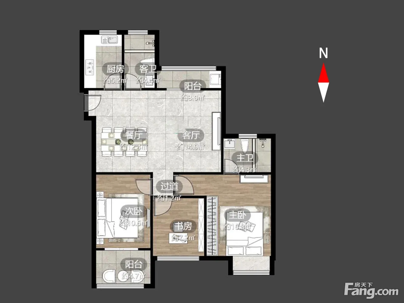 户型齐全,主打明卫,明厨三居