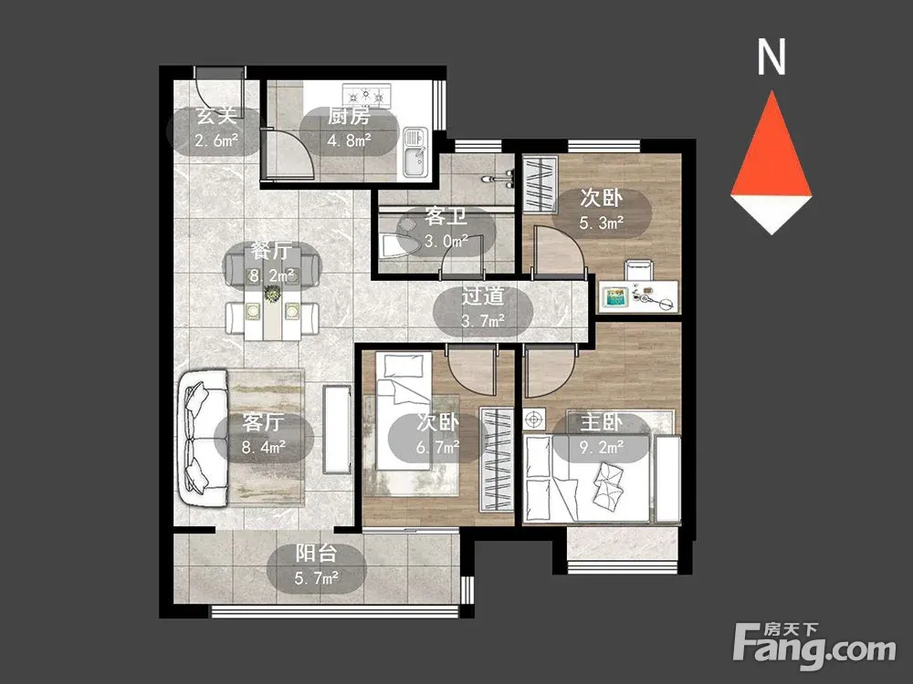 户型齐全,主打户型方正,卧室朝南三居