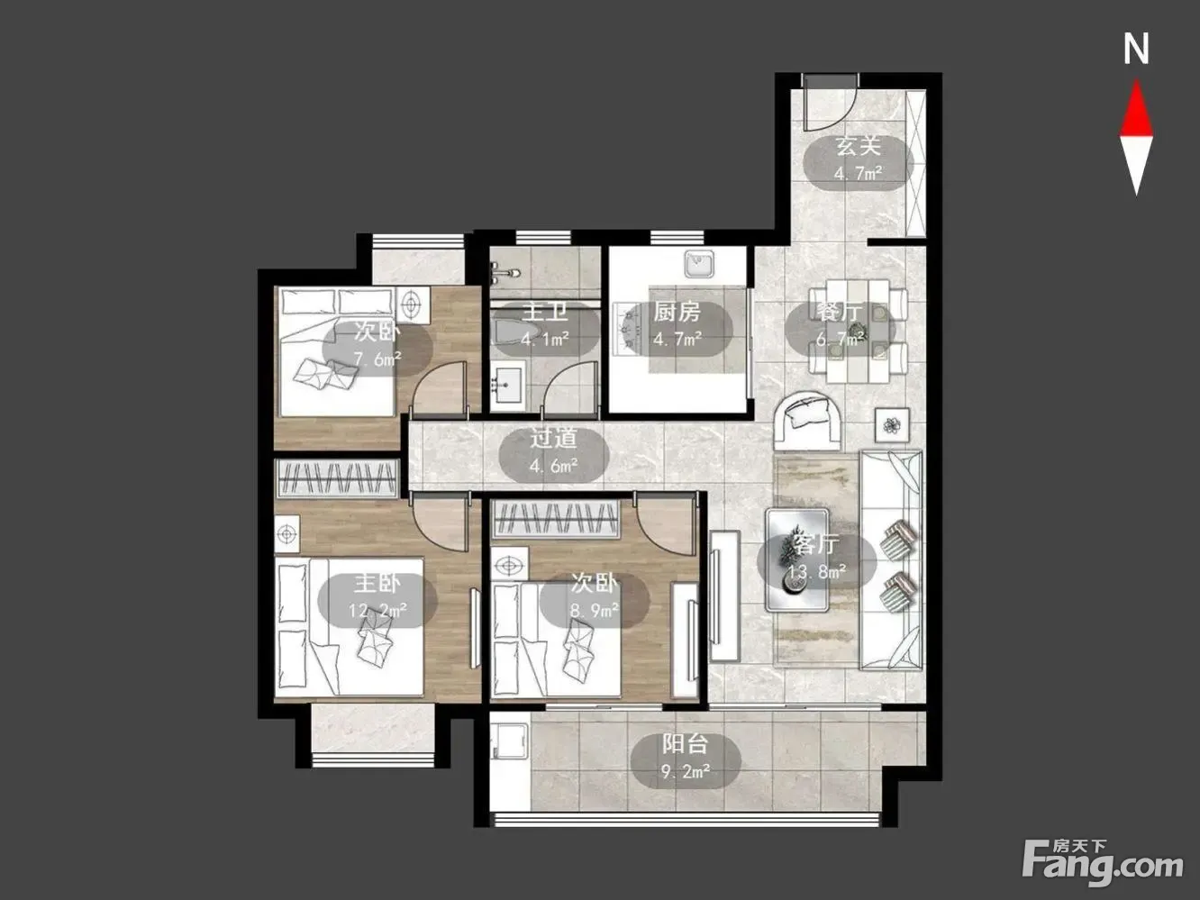 户型齐全,主打户型方正,卧室朝南三居