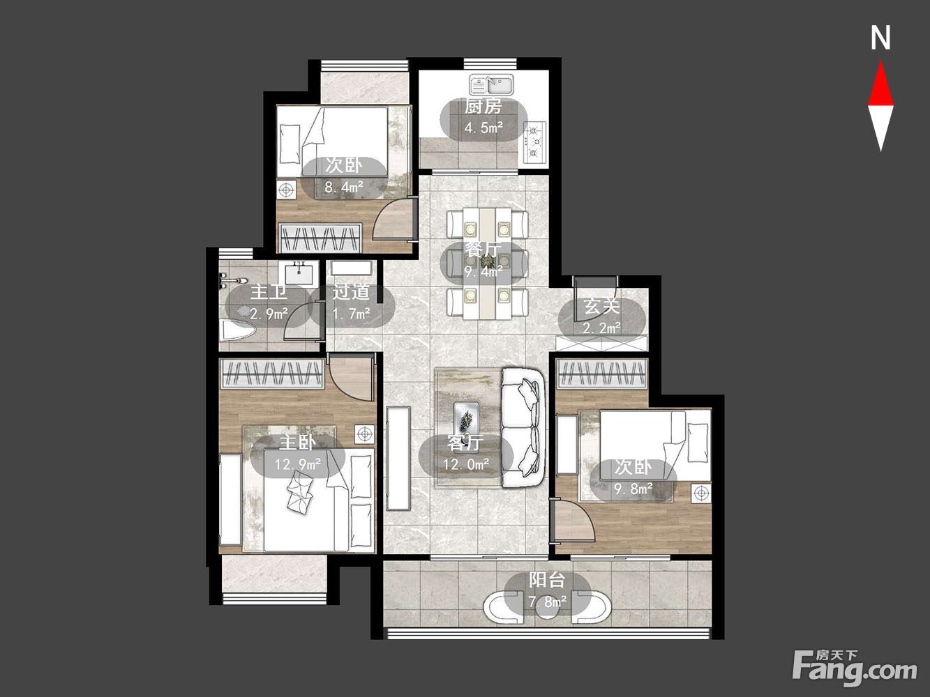 户型齐全,主打户型方正,卧室朝南三居