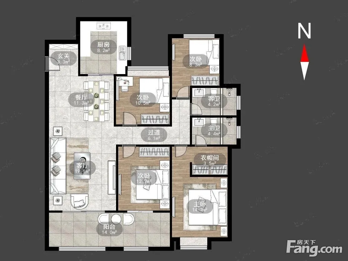 户型齐全,主打户型方正,卧室朝南三居