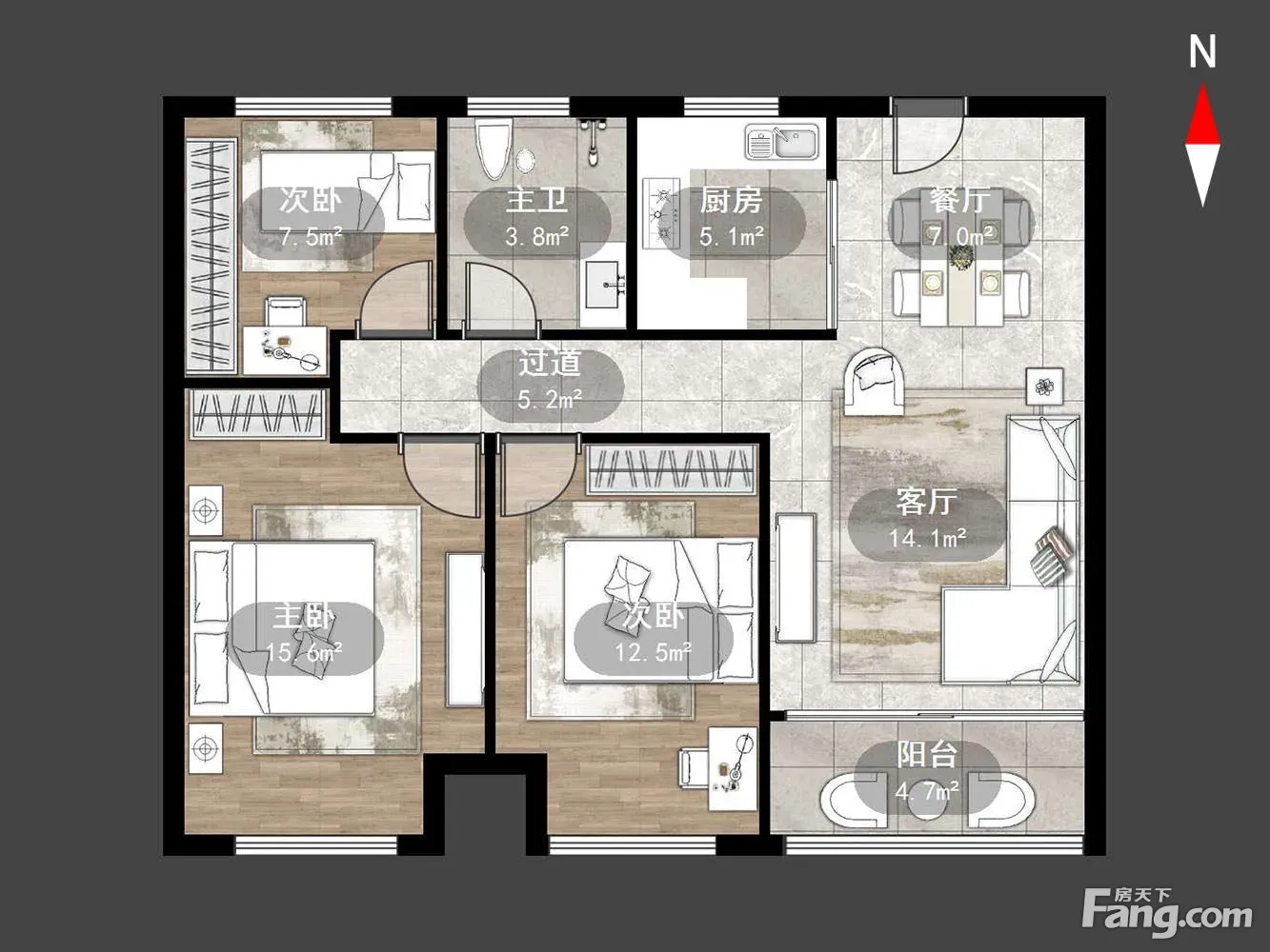 户型齐全,主打户型方正,卧室朝南三居