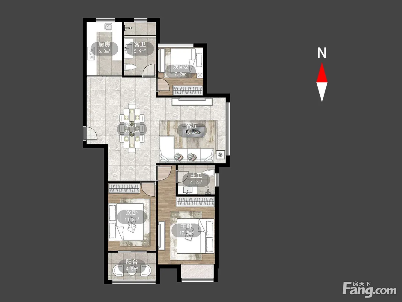 户型齐全,主打明卫,明厨三居