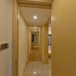进门是一个玄关区域,沿墙布置一些储物柜,方便进出家门换鞋。 玄关另一侧就是厨房,买菜回家立刻就可以放进厨房,非常方便。U型厨房布置,更符台洗、切、煮的操作步骤,非常好 用。 厨房和餐厅中间通过玻璃隔断分隔,增加了通透感,隔绝了油烟。 阳台预留上下水,可以布置洗衣机、洗手盆,晾晒衣物,不会再洒得满屋水渍。 右边布置卧室区,动静分区明确,房间尺寸紧凑合理。 全飘窗赠送,增加了房间的空间延伸,更显得宽敞明亮。 主卧南北通长设计,打开南北窗户,自己就可以通风对流,舒适性增加很多。 北面的连廊遮挡了部分采光,这个是比较大的减分项。