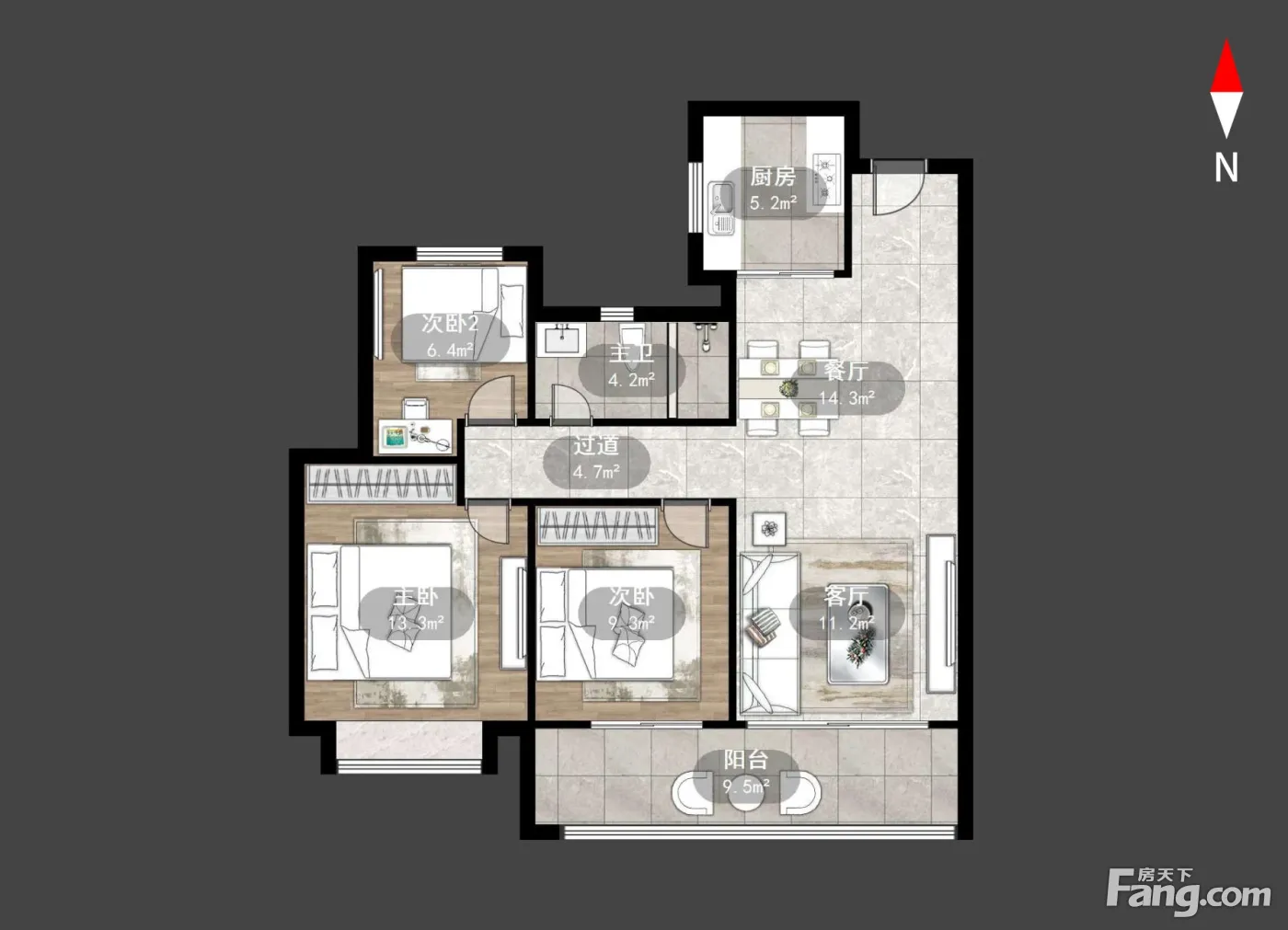 户型齐全,主打户型方正,卧室朝南三居