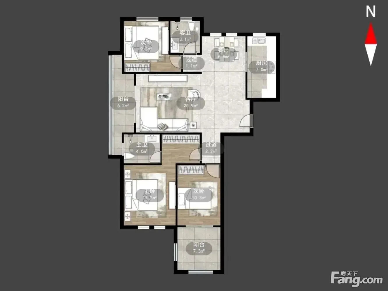 户型齐全,主打户型方正,明厨,明卫,客厅朝南,主卧朝南三居