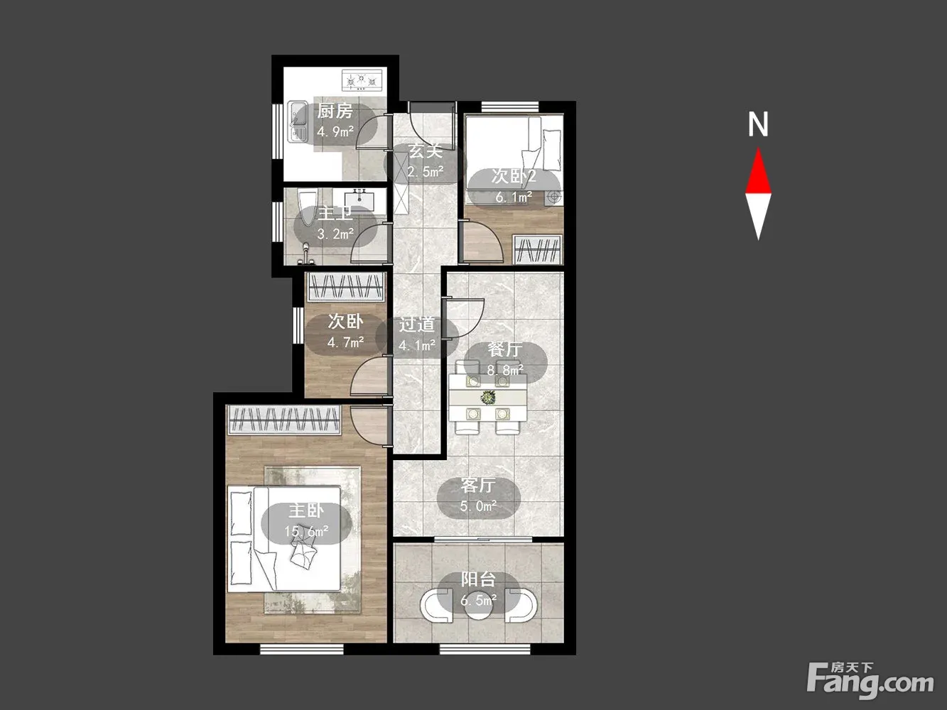 户型齐全,主打明厨,明卫,主卧朝南三居